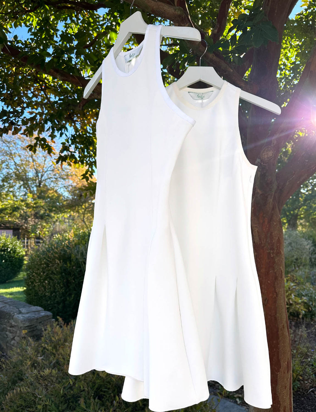 An elegant tennis dress with two pockets that reveals and accentuates the shoulders while the trim fitting waist showcases the hourglass figure. Arm holes cut for motion friendly swings on the court or on the course. The stretch, performance fabric moves with your body and excels in moisture management. Two side pockets disappear into the full skirt. They are mesh, so the grit and dirt falls through.
