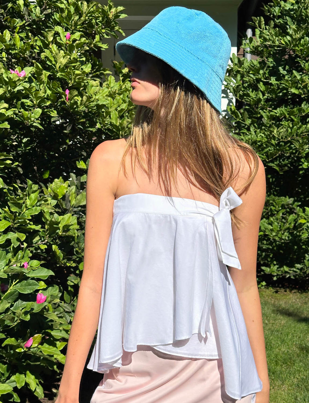 - The skirt waist tie wraps through a loop and around your waist to fit and then tie in a bow or knot.